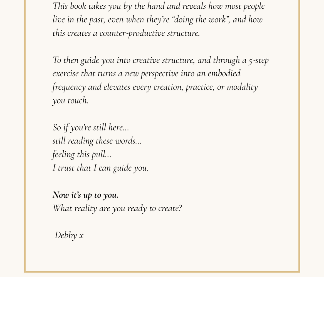 ✔ 122 pages of conscious creation fuel✔ An integrated 90-day fillable workbook ✔ Total of 217 pages designed to guide you into embodied creation✔ 3 guided meditations to anchor embodiment (audio downloads)